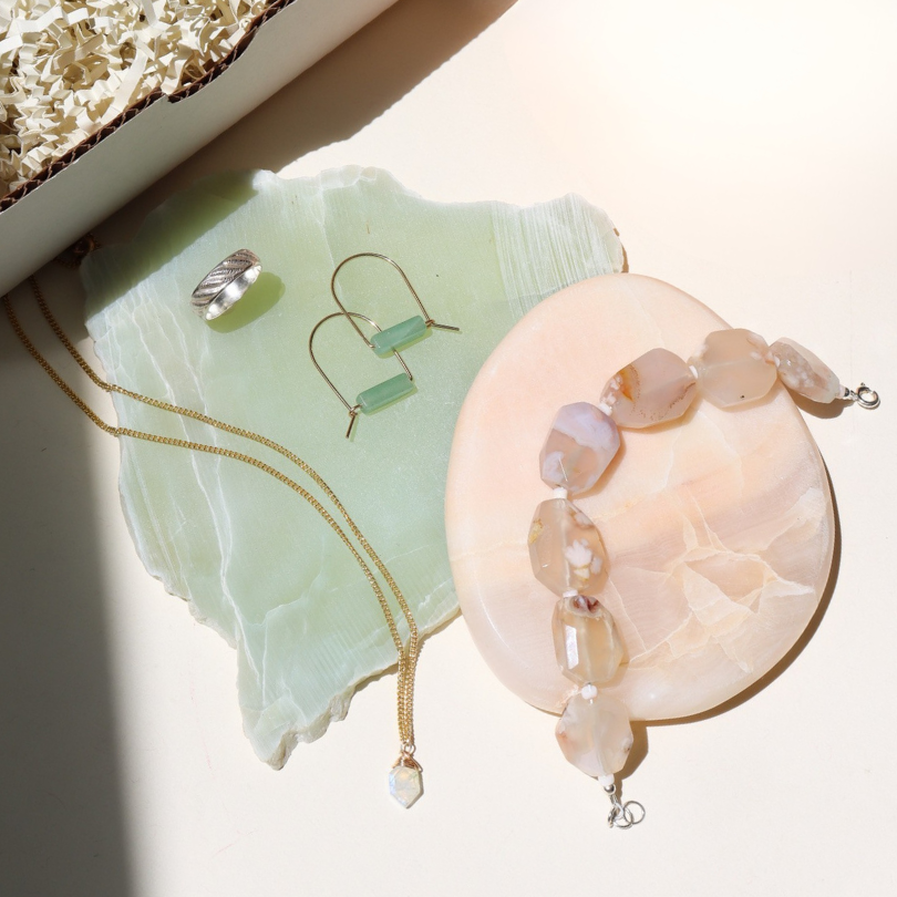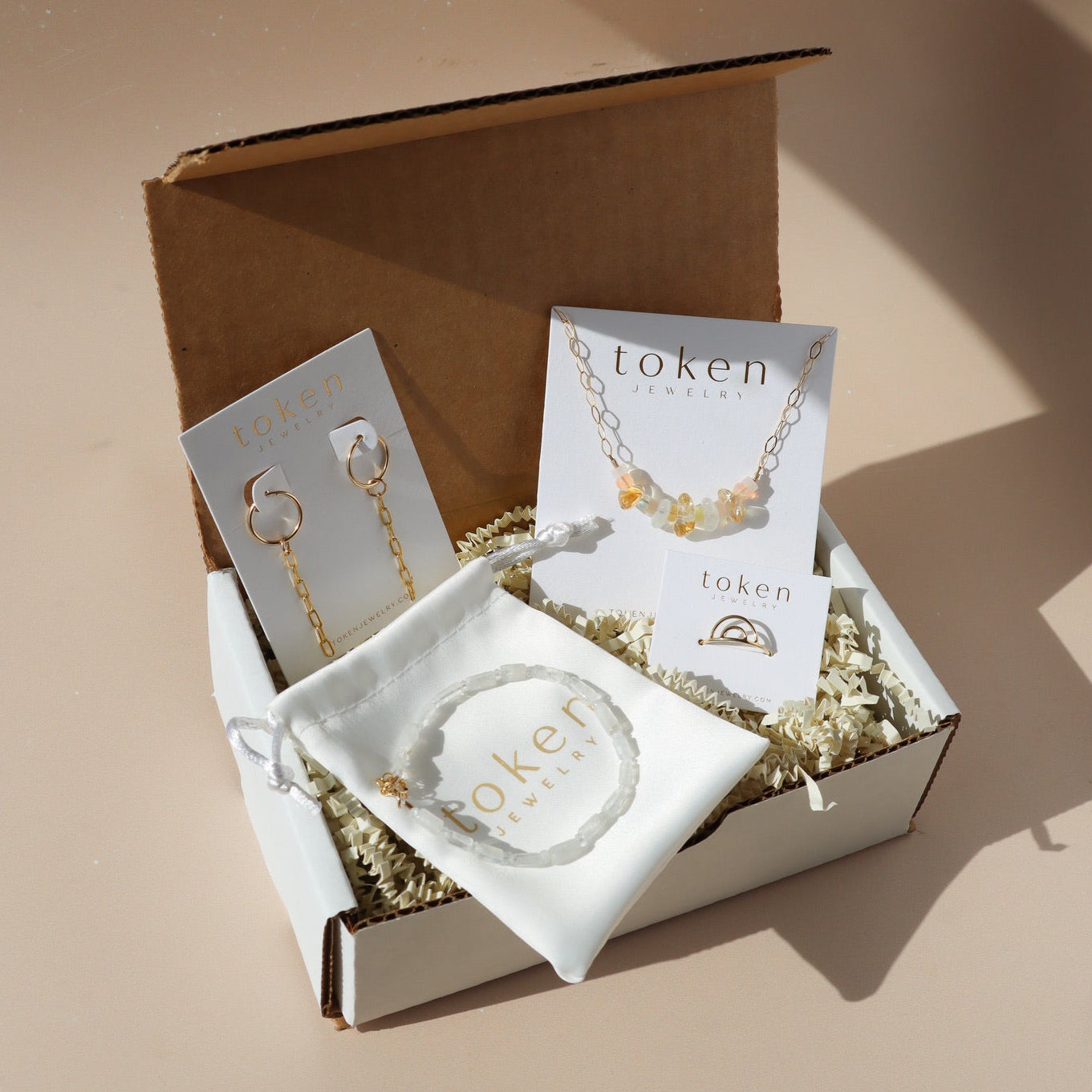 More than twenty years ago, Token Jewelry began with Sarah at the bench, a strand of gemstones, and a desire to create handmade jewelry that carried meaning. Today, our pieces are still crafted by hand in our Wisconsin studio using fine materials and carefully chosen gemstones. Designed to feel effortless and enduring, each piece is inspired by nature, creativity, and the women who wear our work — jewelry made to bring a quiet, beautiful glow into the everyday.