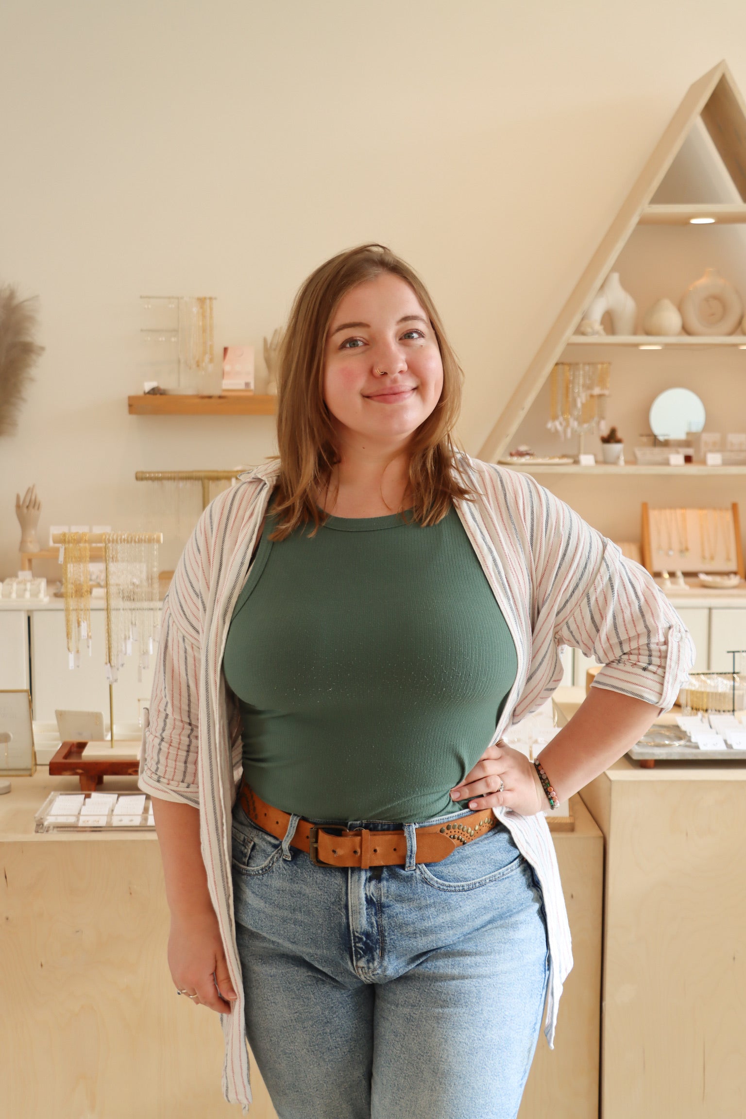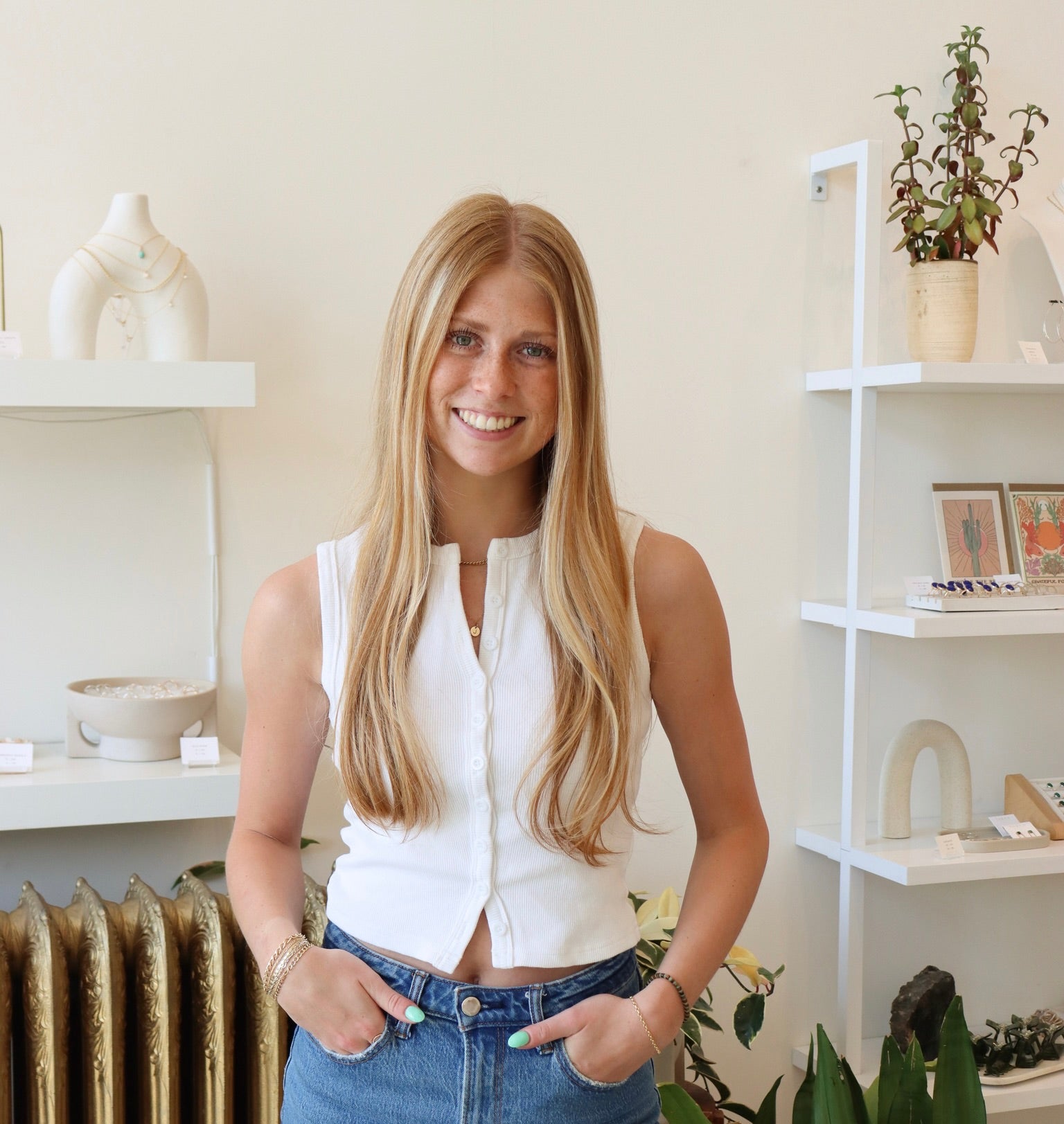 Kira is a stylist who brings a calm, thoughtful presence to the shop—and a great eye for effortless, everyday style. She loves helping you find pieces that feel just right, whether it's your new favorite ring or the perfect earring stack. Outside of Token, you’ll find her on long walks, doing pilates, or shopping for her next go-to outfit. Her favorite Token pieces? The Buckle Ring and Alex Chain Studs (on constant repeat). She’s a dark chocolate enthusiast, a devoted dog mom to her lab, and always up for a chat about style or pups!