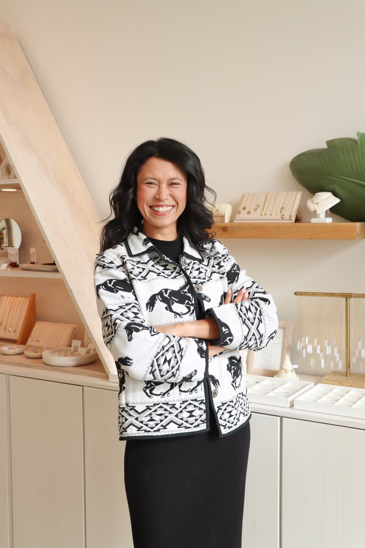 Jen’s jewelry style is simple, classic, and a little trendy—pieces she can wear every day. A mom to two teenagers, Jen is endlessly inspired by nature and her roots: her grandparents owned a flower shop, and she’s carried that legacy forward as a professional florist and wedding venue owner. Grounded by morning walks with her dog and daily coffee rituals, she brings a calm, thoughtful energy to the Token storefront. Working with her hands gives her a deep sense of accomplishment and focus, and she carries that intention into everything she does.