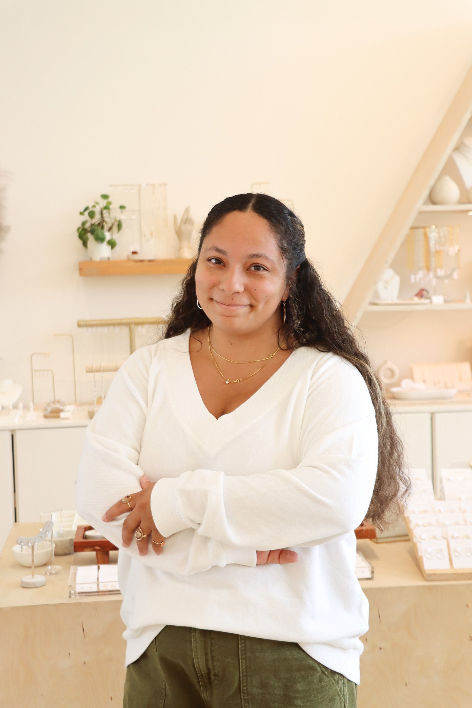 Tara puts her heart and soul into every piece of Token jewelry she makes. This absolutely checks out since her favorite pieces to wear are anything that has a heart! As a matter of fact, her favorite aspect about working as a Maker at Token is that everyone here puts their heart into designing, making, marketing, displaying, and packaging our jewelry. Did your heart melt reading that, because ours sure did!!