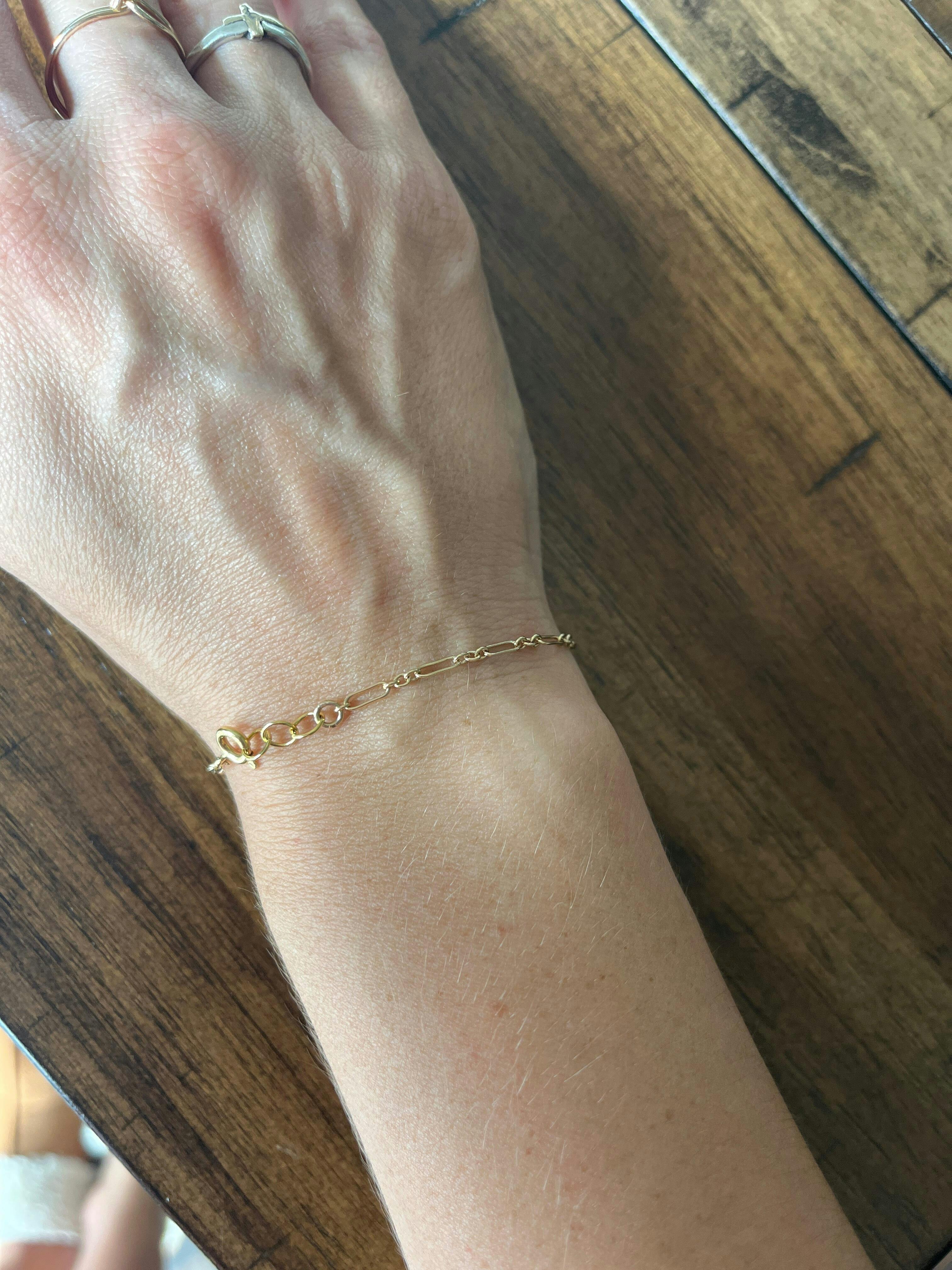 The Callie Bracelet is a dainty and modern version of a classic chain link style! With finer links, this bracelet is easily buildable or you can wear it alone to add just a hint of sparkle to your everyday look! Mix and match a fun stack of Callie, Carter, and Clara for some fun texture that will shine!